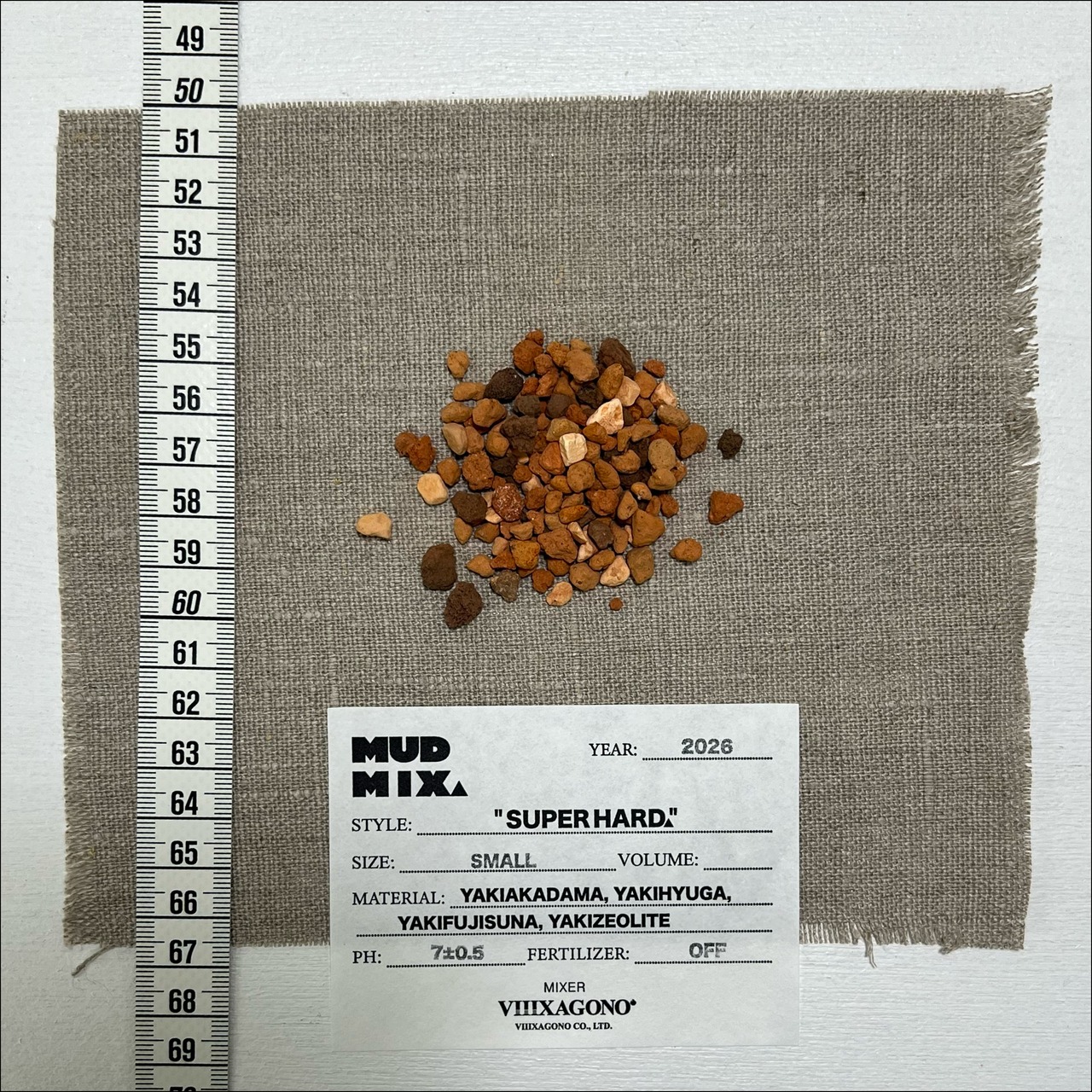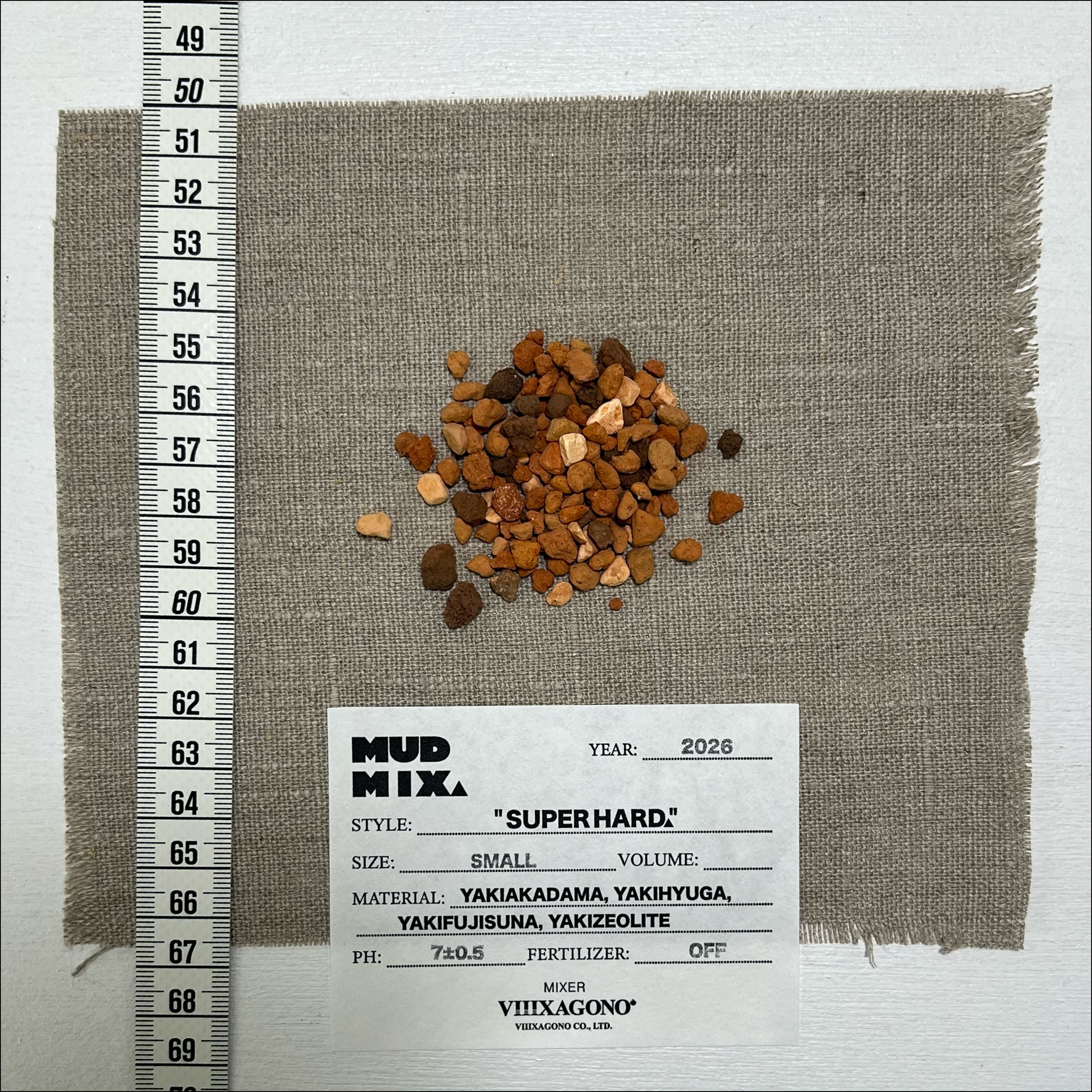 原料: 焼赤玉土(茨城県中部産), 焼日向土(宮崎県産), 焼富士砂, 焼ゼオライト
