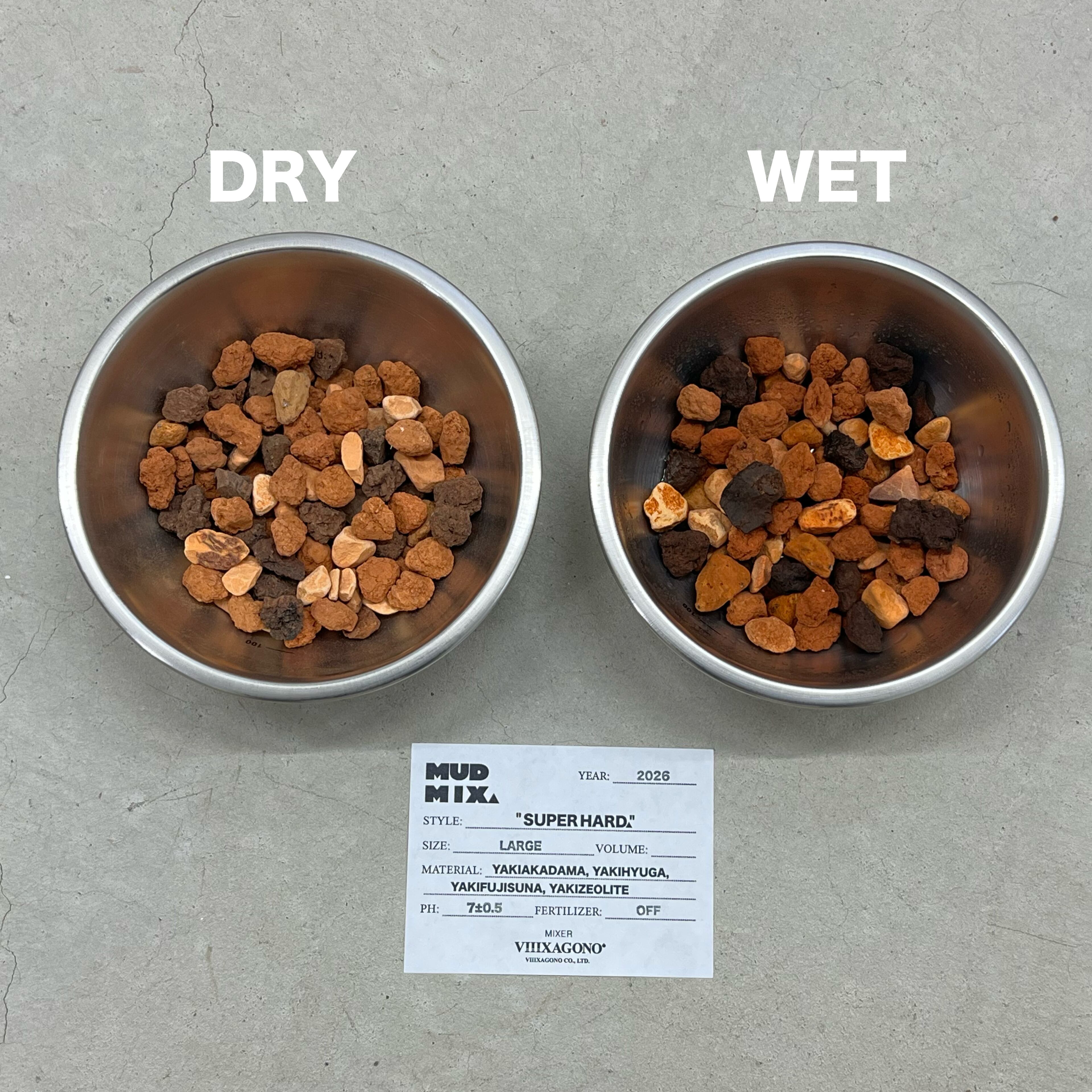 ※写真のステレンスボウルに入っている用土は乾燥状態と水で濡れた状態の比較画像です。