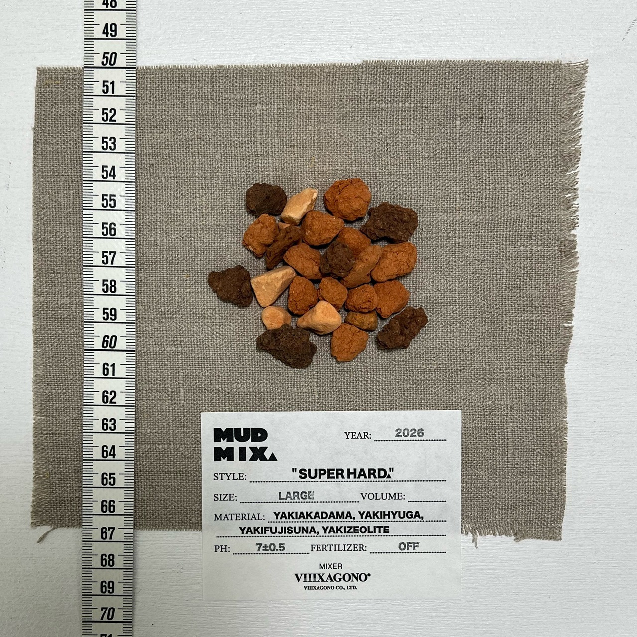 原料: 焼赤玉土(茨城県中部産), 焼日向土(宮崎県産), 焼富士砂, 焼ゼオライト