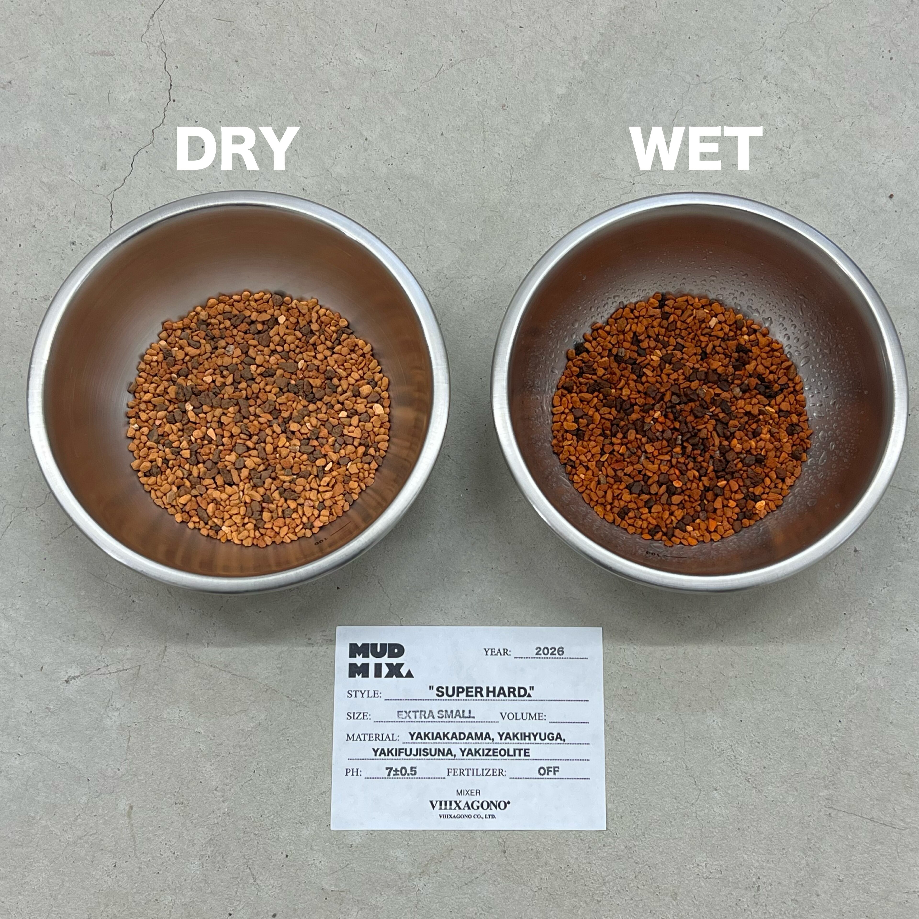 ※写真のステレンスボウルに入っている用土は乾燥状態と水で濡れた状態の比較画像です。