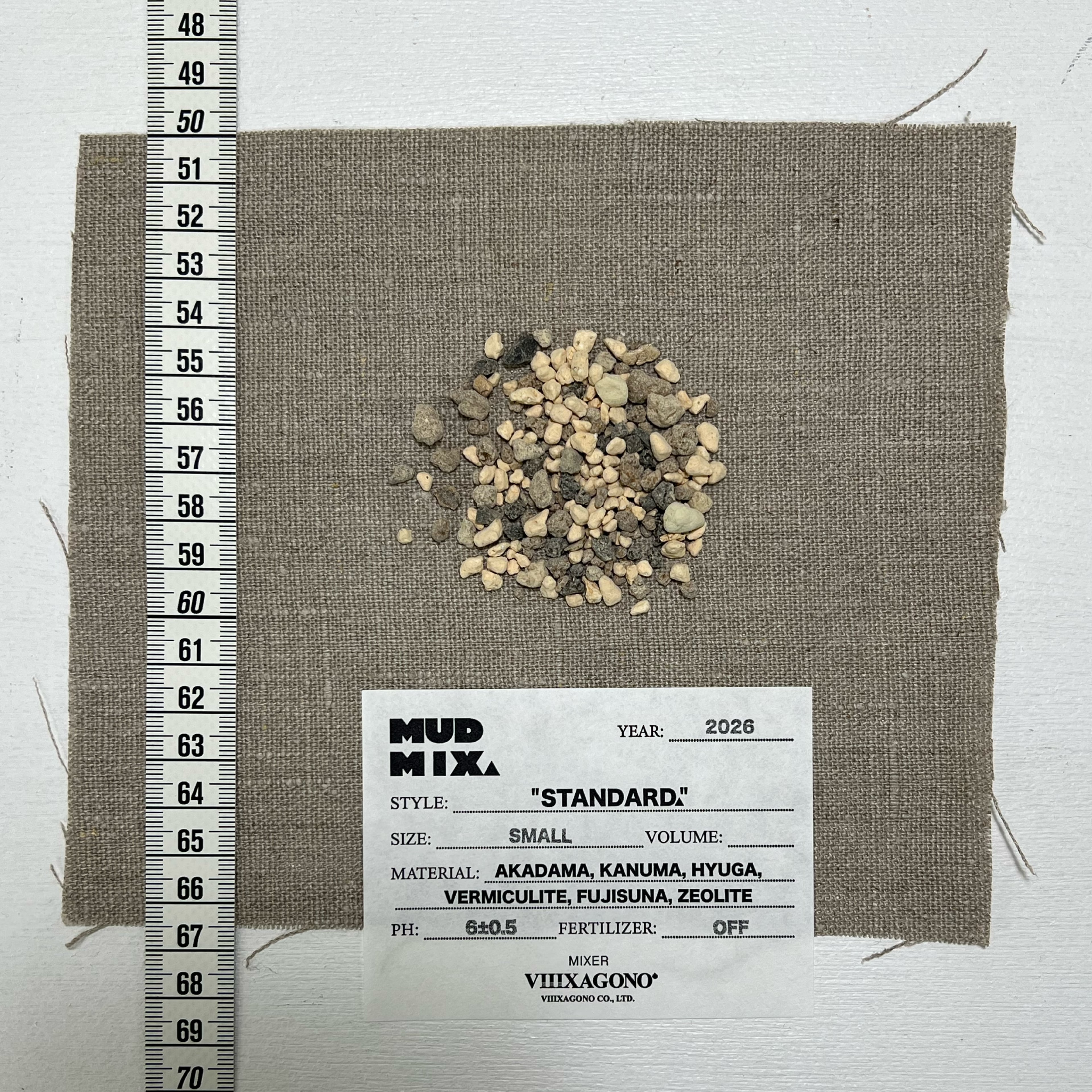 原料: 赤玉土(茨城県中部産), 鹿沼土(鹿沼市北部産), 日向土(宮崎県産), バーミキュライト, 富士砂, ゼオライト
