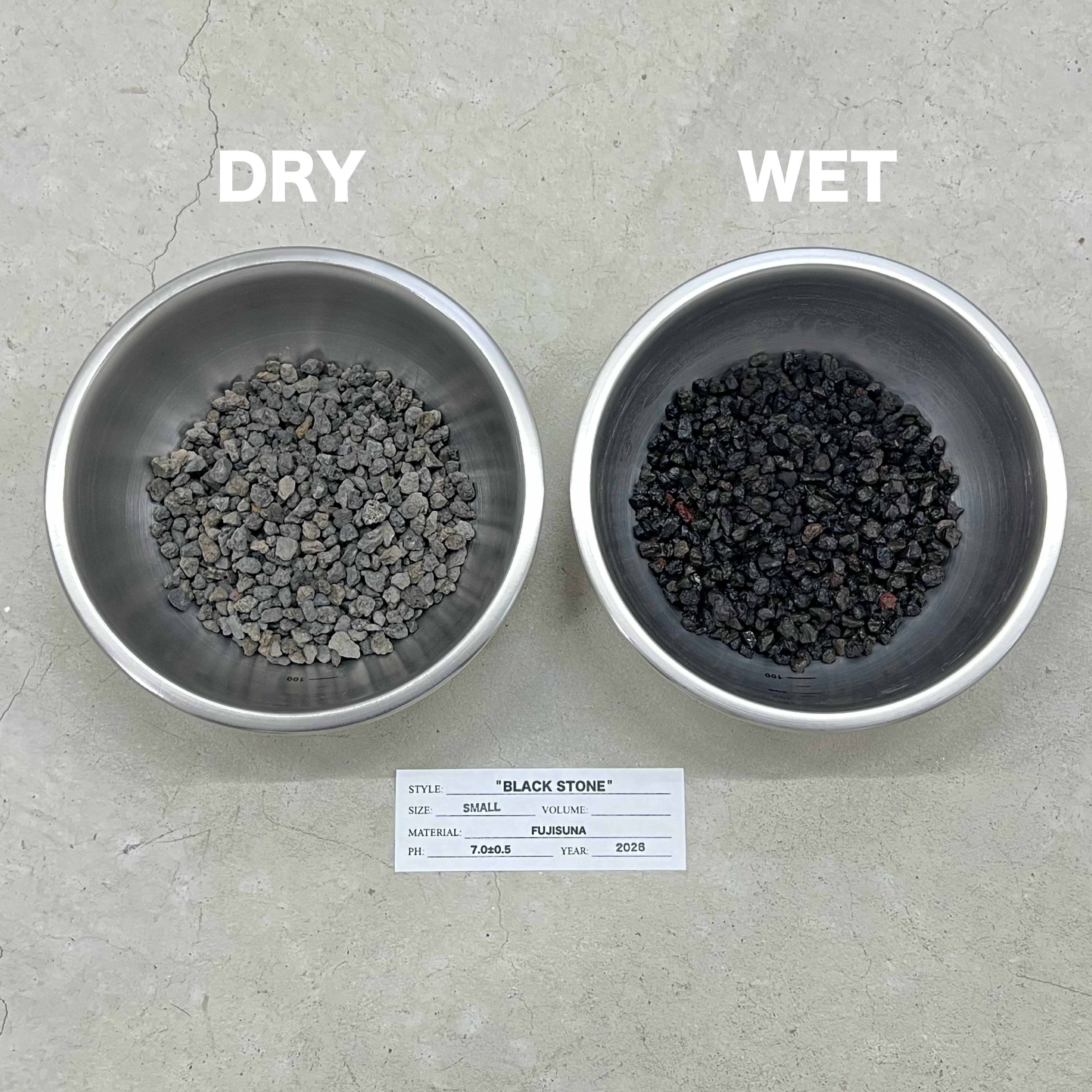 ※写真のステレンスボウルに入っている用土は乾燥状態と水で濡れた状態の比較画像です。