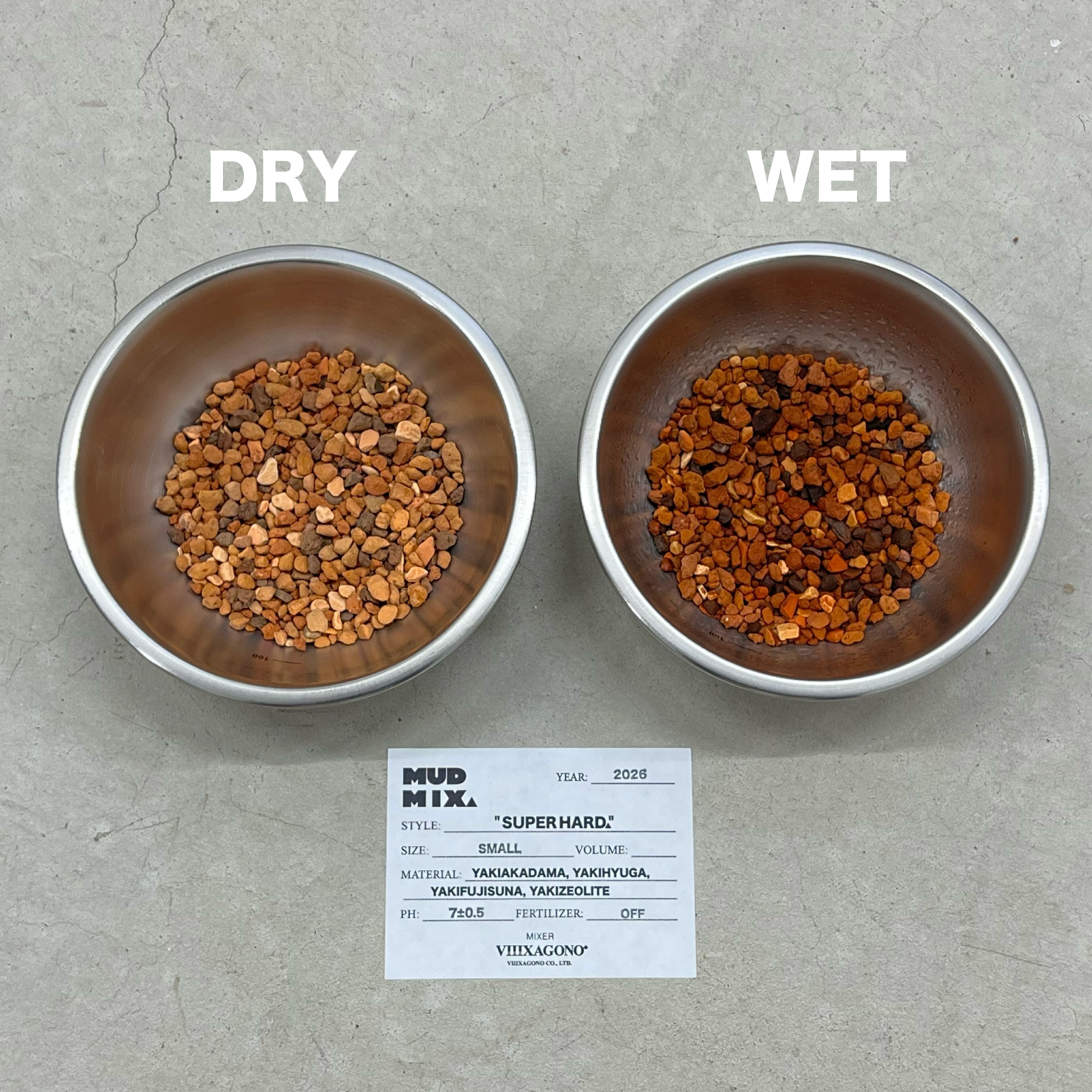 ※写真のステレンスボウルに入っている用土は乾燥状態と水で濡れた状態の比較画像です。
