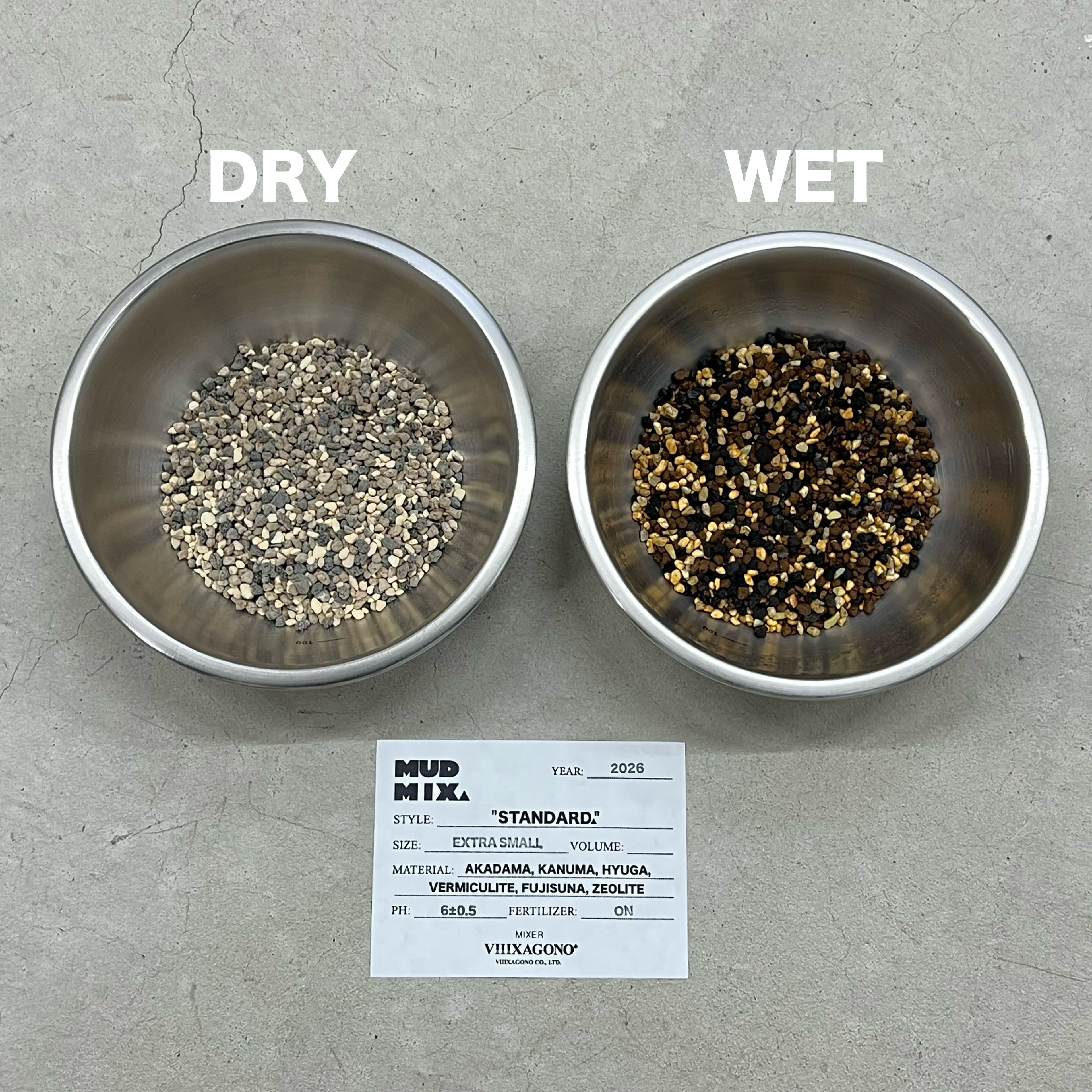 ※写真のステレンスボウルに入っている用土は乾燥状態と水で濡れた状態の比較画像です。