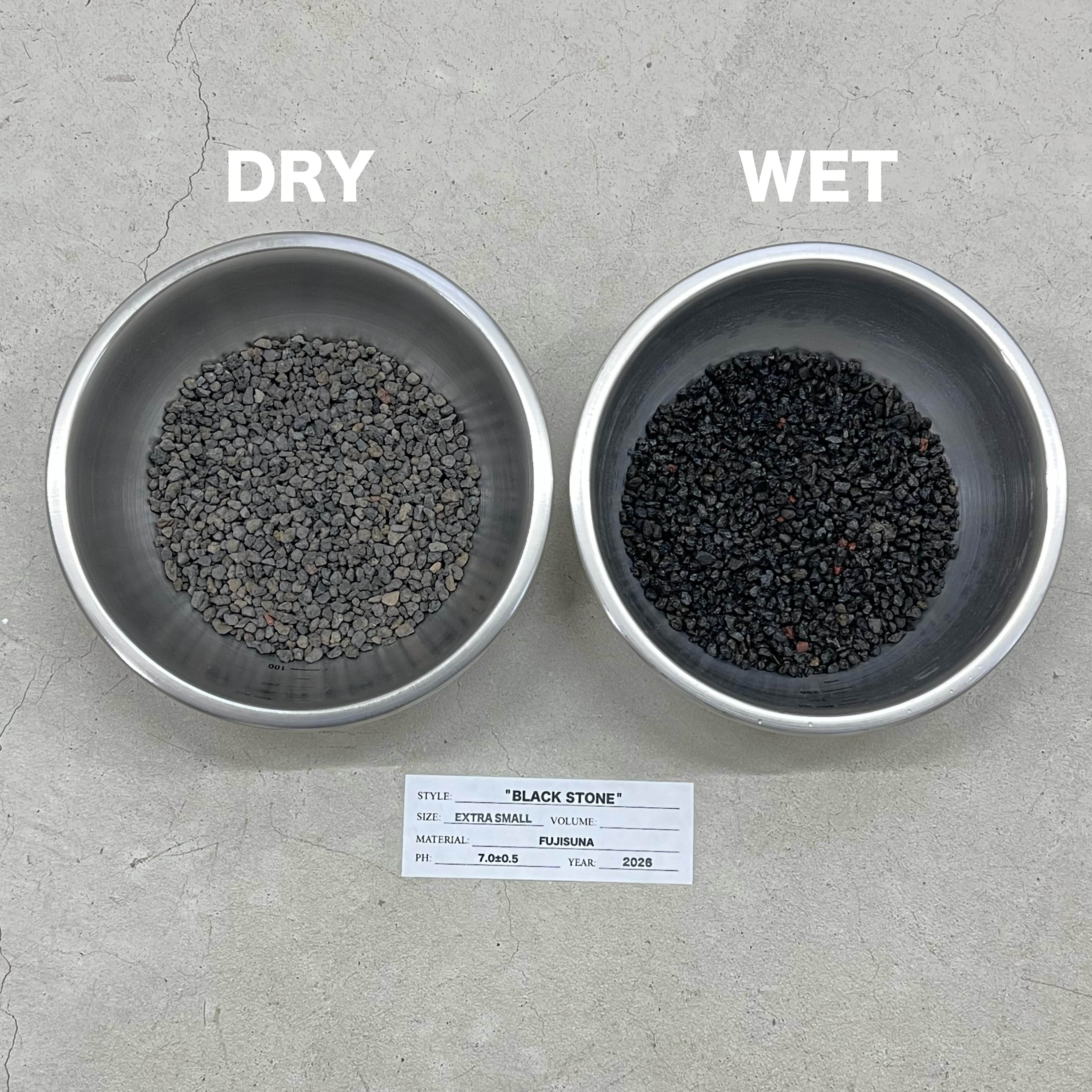 ※写真のステレンスボウルに入っている用土は乾燥状態と水で濡れた状態の比較画像です。