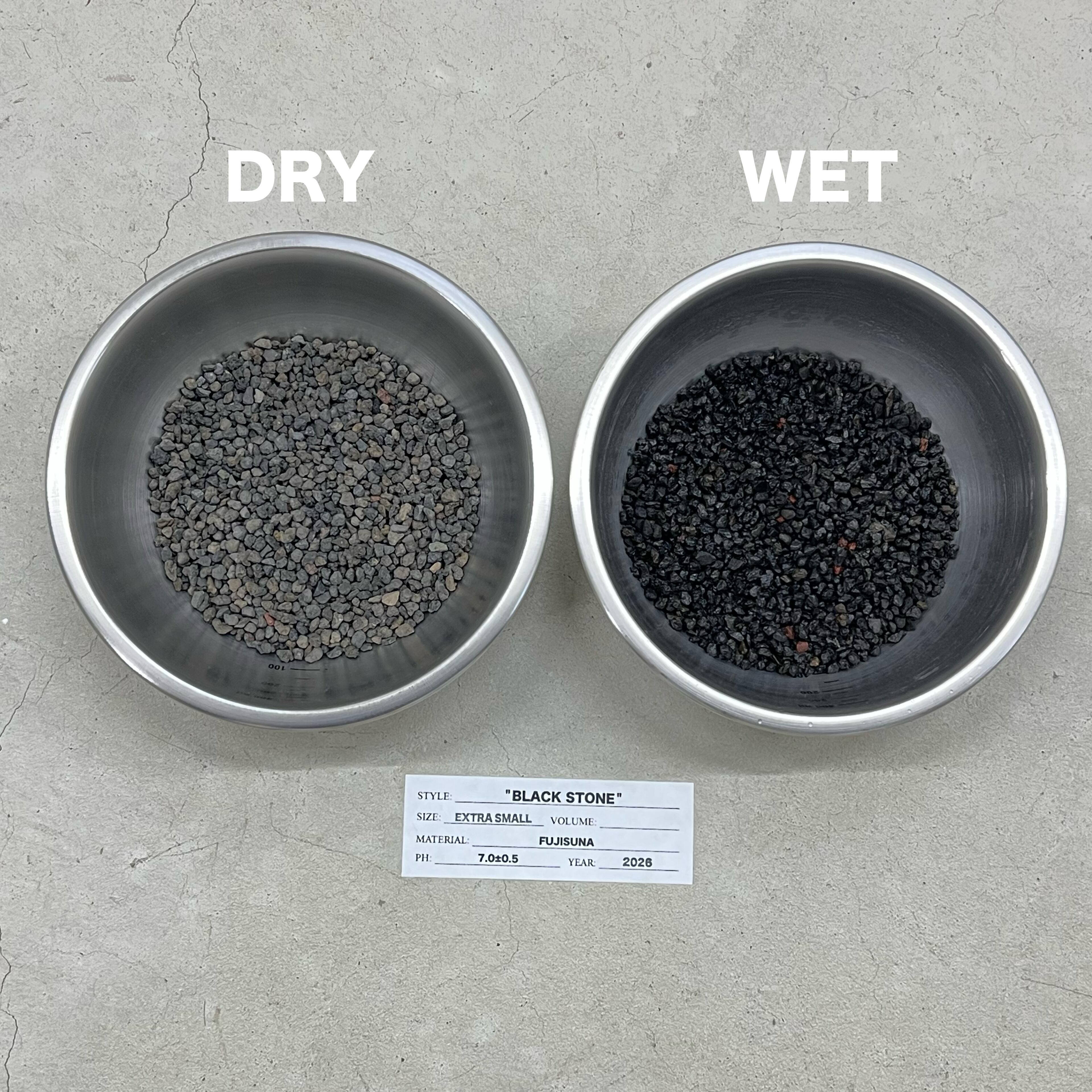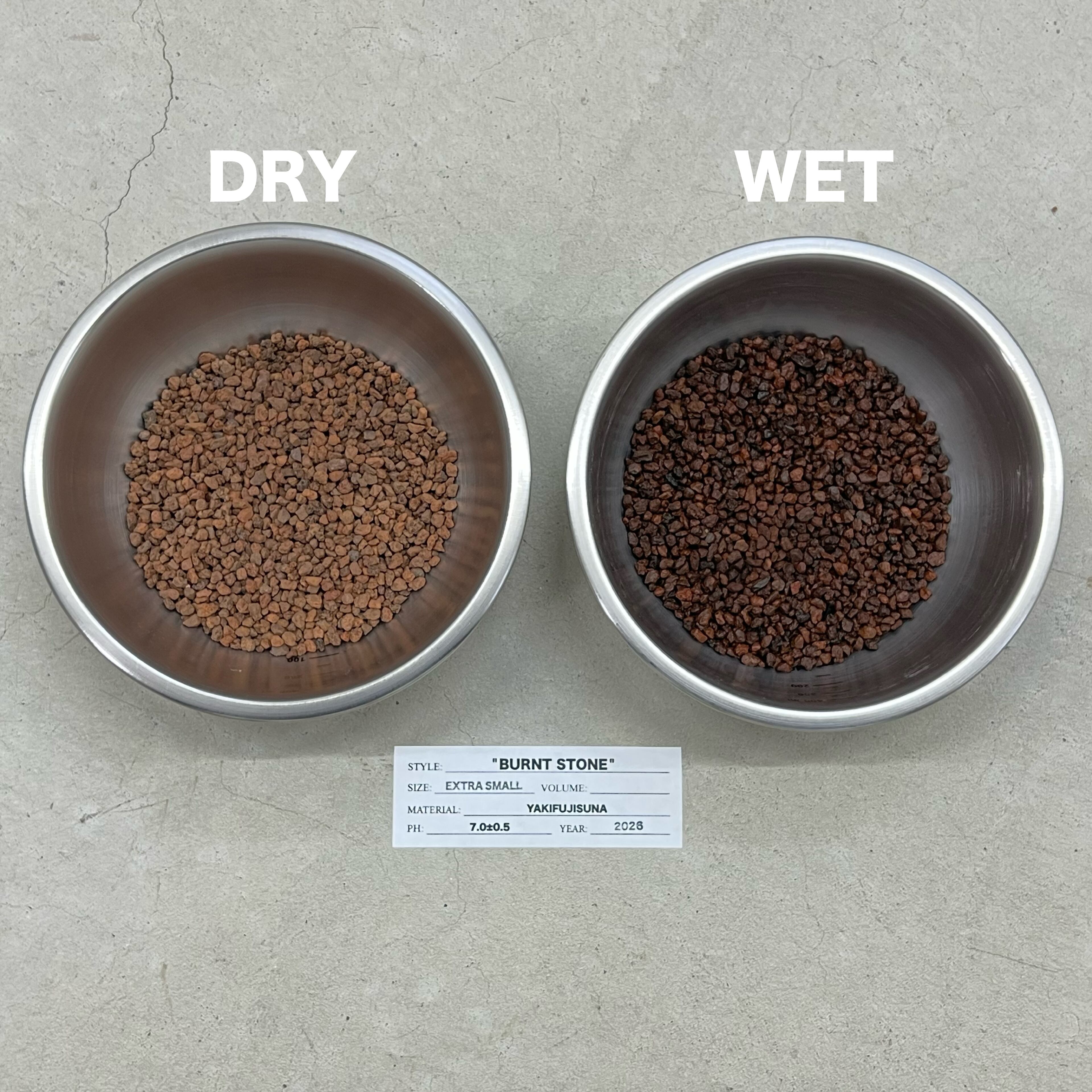 ※写真のステレンスボウルに入っている用土は乾燥状態と水で濡れた状態の比較画像です。