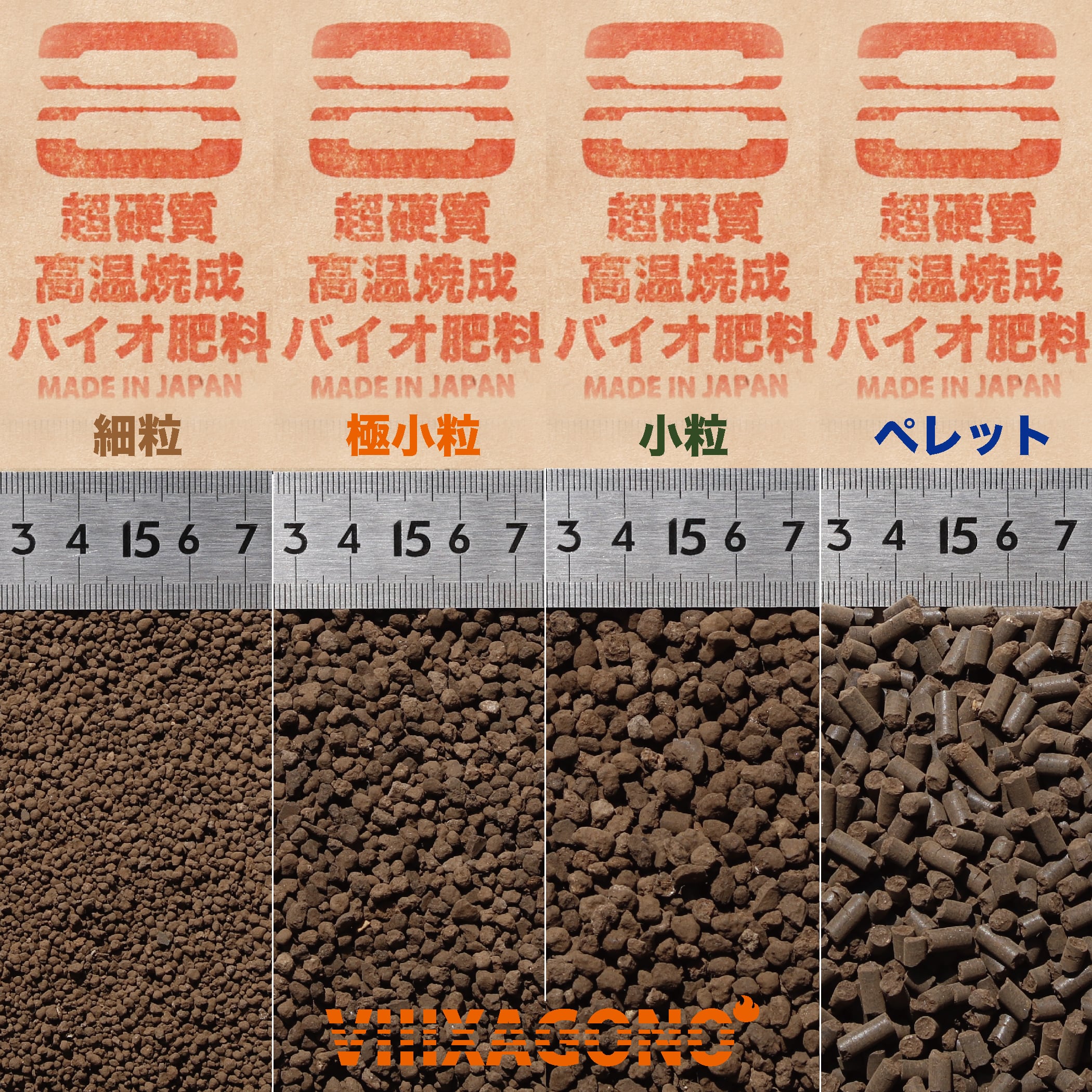 ※粒サイズに合わせた超硬質有機バイオ肥料をお付けします。